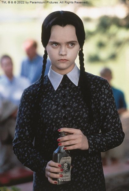 『アダムス・ファミリー』の映画版(1991、93年)ではクリスティーナ・リッチが、2022年に配信されたNetflixオリジナルドラマ『ウェンズデー』では、ジェナ・オルテガが演じています。黒髪の三つ編みと青白い肌と、 白と黒のモノトーンのファッションが特徴的だけど、それぞれ雰囲気が違うの!2人とも大好きです。
