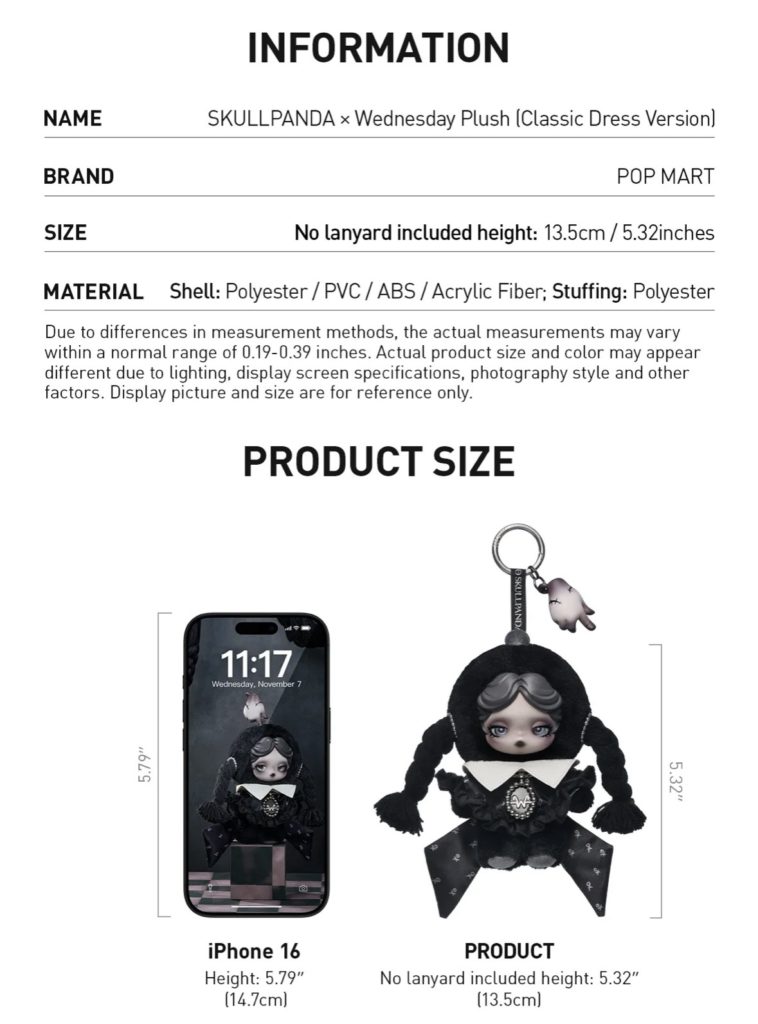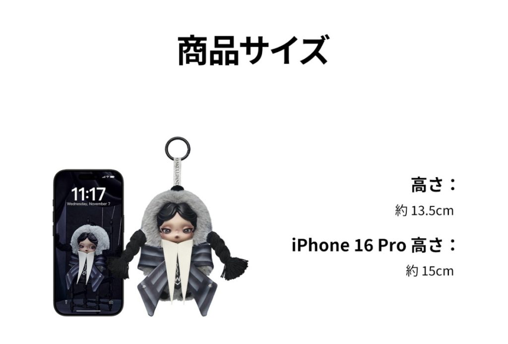 2025年10月24日にリリースされた、スカルパンダ×ウェンズデーコラボのぬいぐるみペンダント。ネヴァーモア学園制服バージョンは日本でも購入することができますが…クラシックドレスバージョンはアメリカ国内限定です。