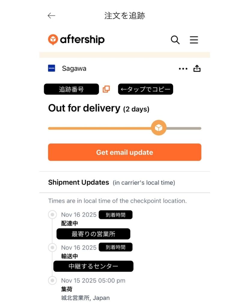 • 追跡情報が発番してから2日以上更新されないときは、ぜひ公式に問い合わせてみて。