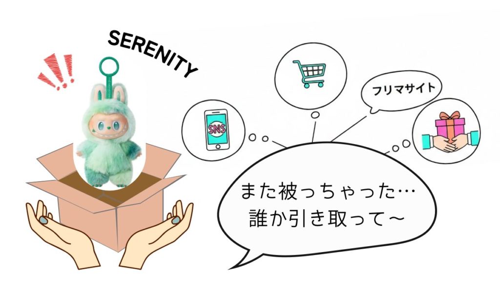 シークレットを期待して同じ商品を複数個購入すると、被りが出てしまうことが多々あります。被ってしまった子を引き取ってくれる方をSNSやフリマサイトで募集するケースがほとんどです。