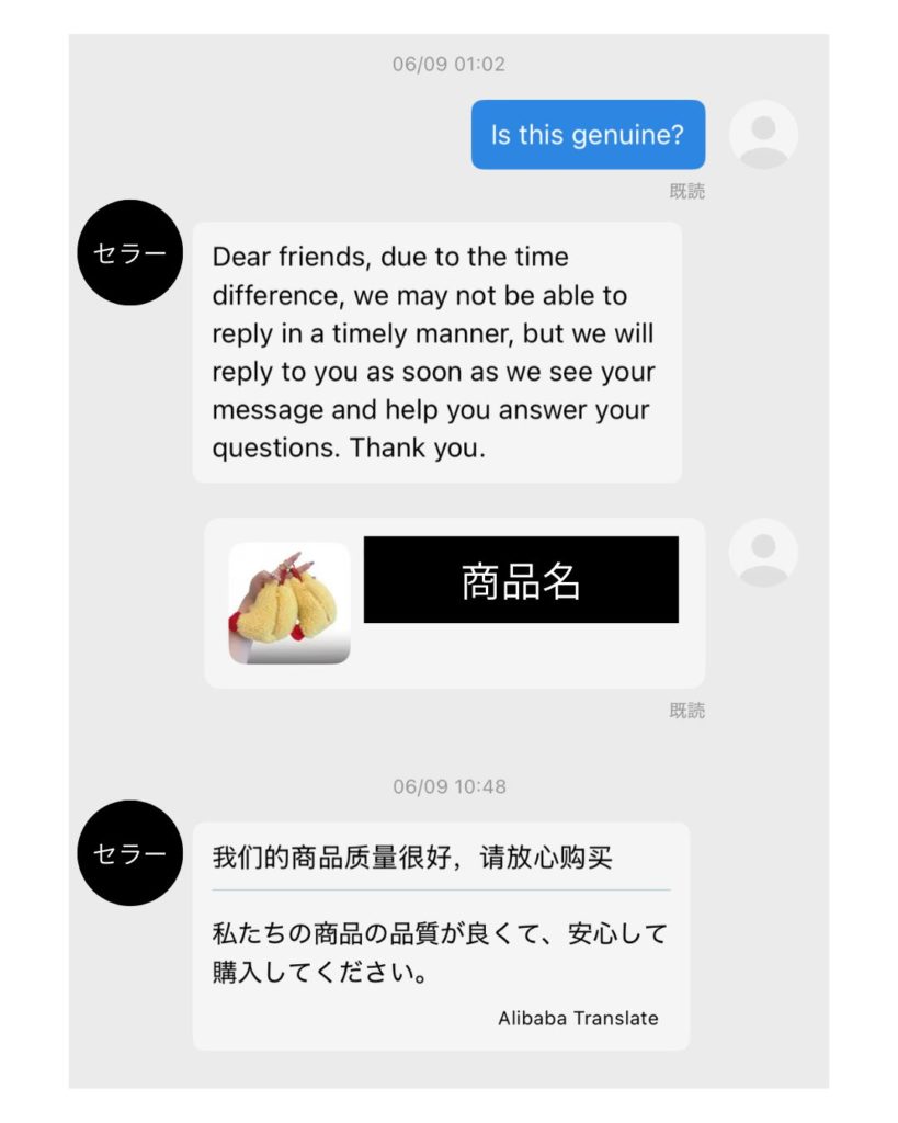 こちらは別のセラー。返信をくれるだけいい方かも?